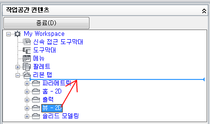 - 변경할 리본 탭이 들어 있는 작업공간을 선택합니다.
