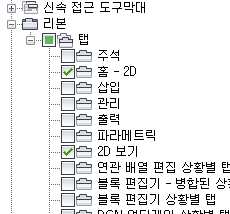 - 작업공간에 추가할 각 리본 탭 옆의 확인란을 클릭합니다.