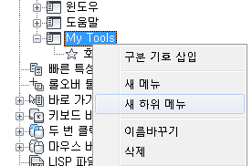 명령 리스트 창에서 하위 메뉴에 추가할 명령을