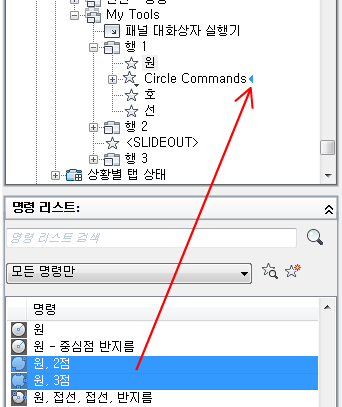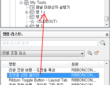 명령 리스트에 리본 조정 요소의 리스트만 표시됩니다.