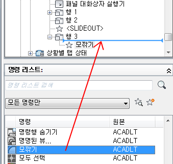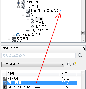 4. 명령 리스트에서 패널의 패널 대화상자 실행기로 명령을 끕니다.