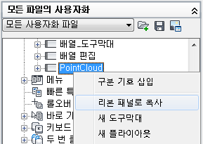 도구막대를 리본 패널로 복사