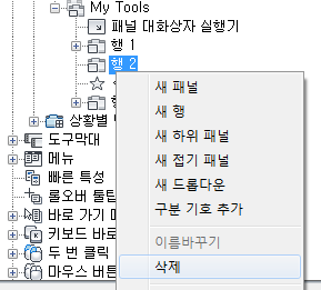 사용자 인터페이스 사용자화(CUI) 편집기 표시