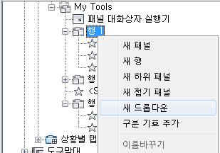 패널 행 또는 하위 패널 위치 조정