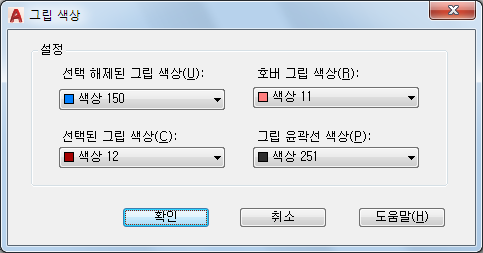 선택되지 않은 그립 위에서 커서가 잠깐 멈추는 경우 이 그립의 채우기 색상을 조정합니다.