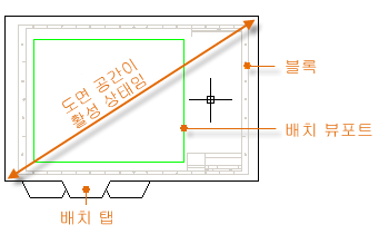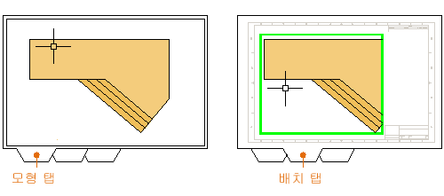 배치에서 모형 공간이 활성 상태일 때 초점이동 및 줌을 할 수 있으며 모형 탭에서 수행할 수 있는 기타 모든 작업도 수행할 수 있습니다.