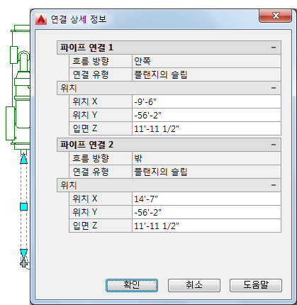 파이프 연결 상세 정보의 예