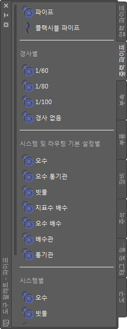 파이프 설계에 따라 압력 파이프 또는 중력 파이프 탭을 클릭합니다.