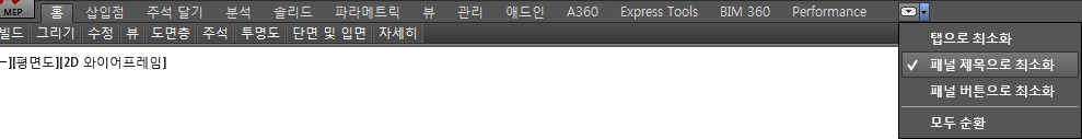 리본 탭의 패널 제목만 표시하려면 리본의 맨 위 오른쪽에 있는
