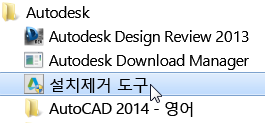 여러 제품이나 제품군 전체를 설치제거하려면 Autodesk 설치제거 도구를 사용하는 것이 좋습니다. 이 도구는 사용자 컴퓨터의 제품 리스트에서 선택하여 실행할 수 있습니다.