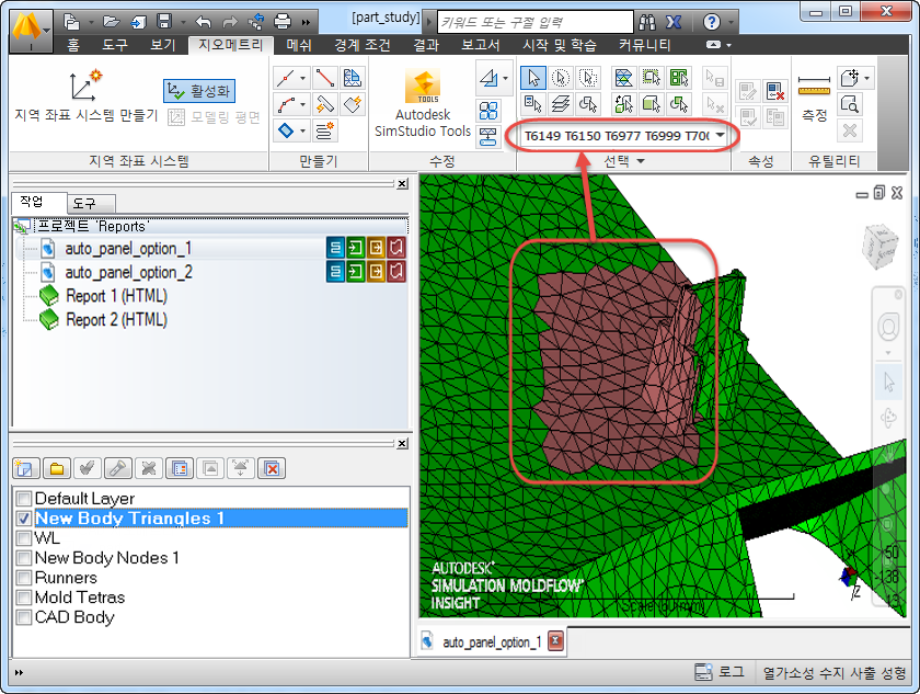 삼각형 요소는 Dual Domain 및 미드플레인 메쉬의 면을 모델링하는 데 사용되는 3절점 요소입니다.