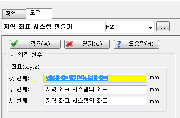 - 각 좌표 상자 3개에 차례로 키보드를 사용하여 필요한 좌표를 입력하거나 모델 분할창에서 필요한 위치를 클릭합니다.