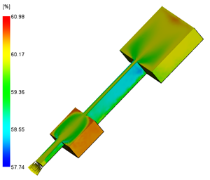 분말 체적 농도 결과는 제품 전체에서 분말이 분산되는 방식을 나타냅니다. 이 결과를 사용하여 검은색 선을 예상할 수 있습니다. 검은색 선은 분말 사출 성형에서 가장 일반적인 결함 중 하나입니다. 이 결함은 공급원료의 분말 및 바인더의 분포가 균일하지 않고 분말 농도가 비교적 낮을 때 발생하며 제품이 소결되기 전까지는 보이지 않습니다.