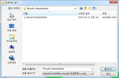 프로젝트 파일(*.mpi)을 클릭하여 선택하십시오.