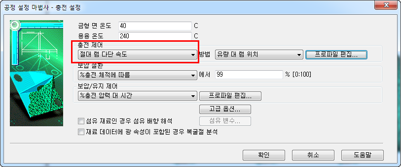 성형 공정 설정 탭