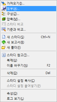조치를 수행할 항목을 마우스 오른쪽 버튼으로 클릭하고 나타나는 컨텍스트 메뉴에서 항목을 선택하여 프로그램에서 수행 가능한 여러 조치를 신속히 선택할 수 있습니다.