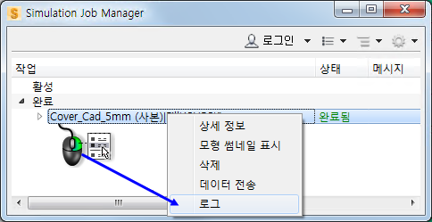 Simulation Job Manager에 해석이 완료되었음이 표시되었지만 Simulation 작업 서버에서 클라이언트로 모든 결과가 반환되지 않은 경우, 결과를 수동으로 복구할 수 있습니다.