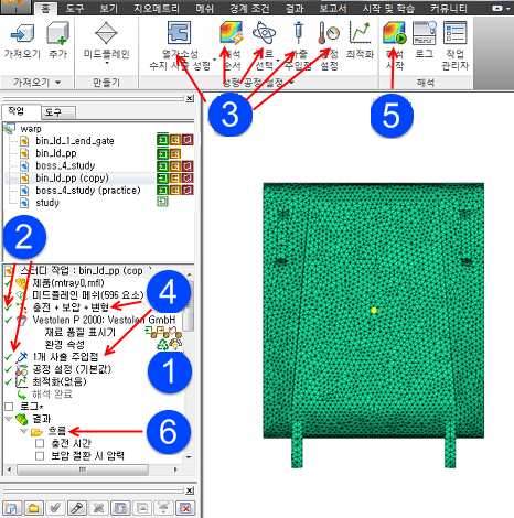 예를 들어 해석 순서 아이콘을 마우스 오른쪽 버튼으로 클릭하면 해석 순서를 변경할 수 있습니다. 또는 (홈 탭 > 성형 공정 설정 > 해석 순서)을 클릭하여 리본 메뉴를 사용해 동일한 작업을 수행할 수 있습니다.