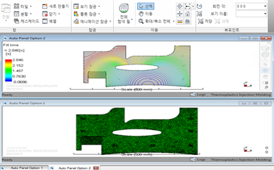 분할 명령은 모델 보기 분할창을 여러 패널로 나누므로 동일한 스터디의 여러 결과를 동시에 볼 수 있습니다. 각 결과의 이름이 각 패널의 왼쪽 상단 코너에 표시됩니다.