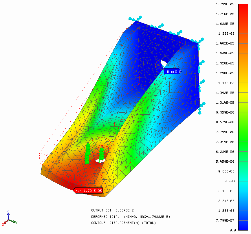 - 새 하위 사례 2 아래에 있는 변위 플롯을 두 번 클릭하여 변형된 형상의 총 변형 윤곽선을 플롯합니다.