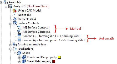 - 해석에 추가: 해석에 추가 확인란을 클릭하여 이런 식으로 생성된 표면 접촉을 해석에 적용할 수 있습니다. 모델 분기에서 트리의 해석 분기로 접촉 쌍을 끌어서 놓거나 복사하여 붙여넣을 수도 있습니다.