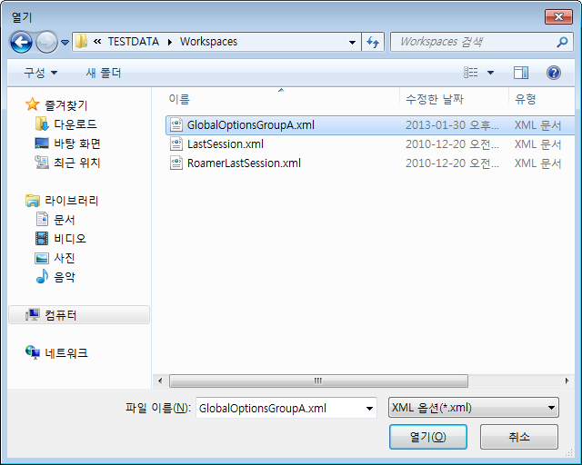 대화상자에서 설정 파일이 포함된 폴더를 찾아서 선택하고