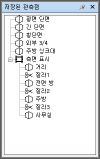 저장된 관측점 창은 사용자가 서로 다른 모형 뷰를 작성하고 관리할 수 있는 고정 가능한 창이므로 매번 탐색할 필요 없이 사전 설정된 관측점으로 바로 이동하여 항목에 도달할 수 있습니다.