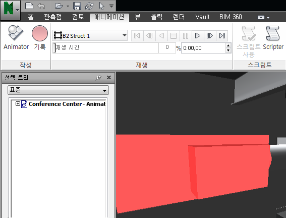 - 리본에서 애니메이션 탭을 클릭합니다. 재생 패널의 재생 위치 슬라이더가 정확한 간섭 발생 지점으로 이동합니다. 슬라이더를 이동하여 간섭 전후에 바로 발생하는 이벤트를 조사할 수 있습니다.