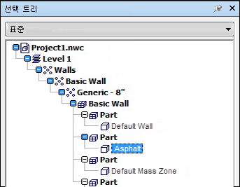 선택 트리에서 파일이 표시되는 방식을 변경하도록 Revit 파일 변환 매개변수를 구성할 수 있습니다. 예를 들어 파일을 수준별로 분할하여 최상위 수준의 파일부터 범주, 패밀리, 유형 및 인스턴스로 모형 계층을 구성할 수 있습니다. Revit 파일을 수준별로 분할하려면을 참고하십시오. 또한 Revit 파일의 경우 하위 부품은 해당 부품이 만들어진 재질에 따라 이름이 지정됩니다. 예를 들어 벽은 아스팔트 또는 알루미늄으로 구성된 하위 부품으로 분할될 수 있습니다.