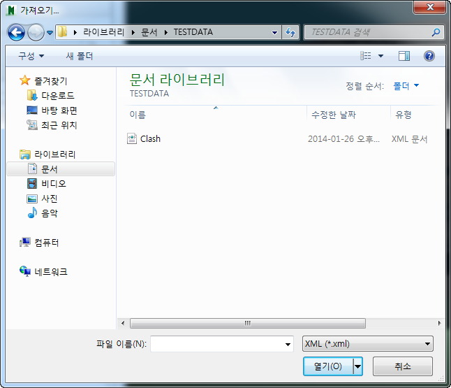 대화상자에서 간섭 테스트 데이터를 포함하는 폴더를 찾은 다음