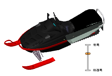 초점이동 도구와 달리 위쪽/아래쪽 도구를 사용하여 모형의 Z축을 따라 현재 관측점의 높이를 조정합니다. 현재 뷰의 수직 고도를 조정하려면 위나 아래로 끕니다. 커서를 끌면 수직 거리 지시자라는 그래픽 요소에 현재 고도와 허용된 동작 범위가 표시됩니다.