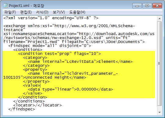 XML 파일에서 위의 노란색으로 강조 표시된 조건 노드에 해당하는 코드 행을 복사합니다.