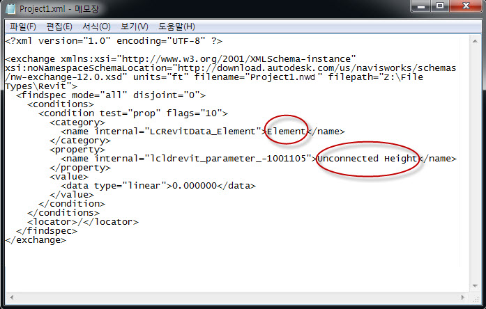 위 이미지에서 항목 찾기 창(왼쪽)의 요소 범주가 특성 창(오른쪽)의 요소 탭에 어떻게 표시되고 연결되지 않은 높이가 각 창의 특성 열에 어떻게 표시되는지 유의하십시오. 그런 다음 아래 표시된 대로 항목 찾기 창의 내보내기를 사용하여 XML 파일을 생성할 수 있습니다. 요소 및 연결되지 않은 높이의 코드가 어떻게 작성되는지 확인하십시오.