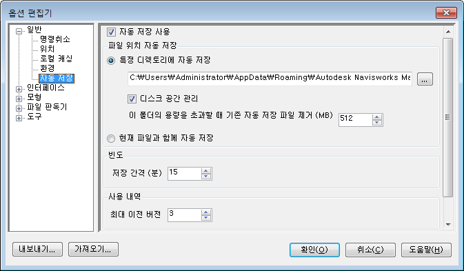 자동으로 Autodesk Navisworks 파일 저장 및 복구