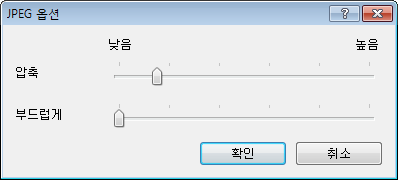 JPEG 파일의 경우 옵션 버튼을 클릭하고 JPEG 옵션 대화상자를 사용하여 압축 및 부드럽게 설정을 지정합니다.