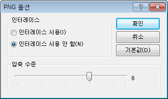 PNG 파일의 경우 옵션 버튼을 클릭하고 PNG 옵션 대화상자를 사용하여 인터레이스 및 압축 설정을 지정합니다.
