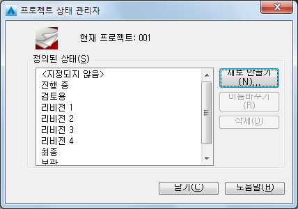 현재 프로젝트에 대해 정의된 상태를 나열합니다. 이 대화상자의 이 리스트에서 상태를 추가하거나, 이름을 바꾸거나, 제거할 수 있습니다. 기본 상태 리스트에는 다음이 포함됩니다.