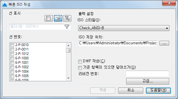 빠른 ISO를 작성할 선택 세트를 지정합니다. 선택 세트를 사용할 경우 출력 도면 이름은 UserDefinedLine입니다.