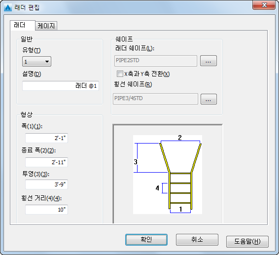 래더 쉐이프 설정을 편집합니다.