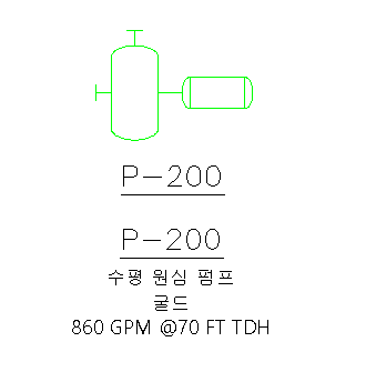 다음은 펌프 태그 및 펌프 정보 태그와 연관된 수평 원심 펌프의 예입니다.