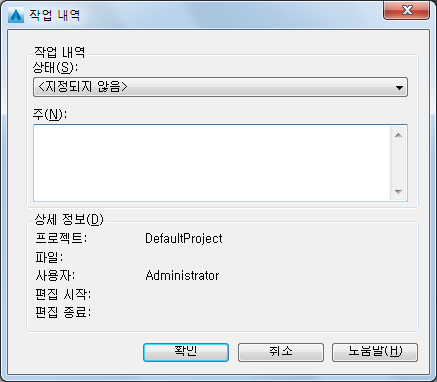 프로젝트 설정에 따라, 편집하기 위해 프로젝트 도면을 열거나 닫을 때 이 대화상자가 자동으로 표시됩니다.