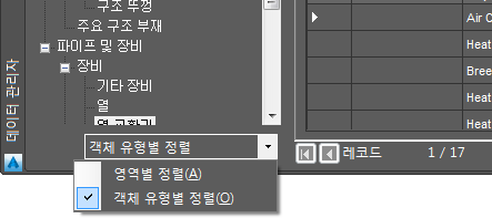 영역 또는 객체 유형을 선택하여 트리 구성 방식을 변경할 수 있습니다.