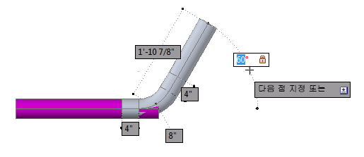파이프를 라우팅하거나 변환할 때 파이프 절곡부를 작성합니다.