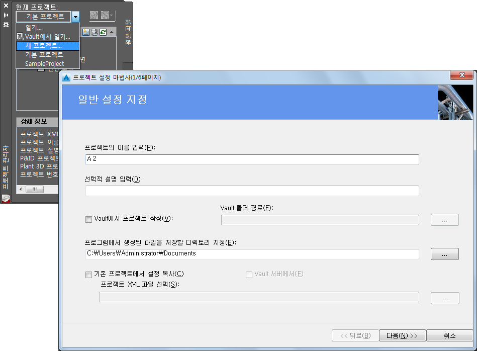 기본 프로젝트와 새로 작성한 모든 프로젝트에는 경로, 도면, 데이터 관리자 구성 등에 대한 표준 설정이 포함됩니다. 이러한 기본 설정은 전체 프로젝트 주기에서 대부분의 작업에 적합한 경우가 많습니다. 그러나 조직 또는 고객의 특정 요구 사항에 맞게 이러한 설정을 구성할 수 있습니다. 도면 환경은 프로젝트 설정 대화상자에서 구성할 수 있습니다.