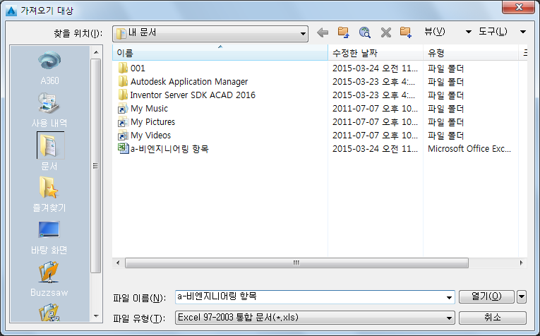 프로젝트를 가져올지, 도면 데이터를 가져올지 또는 프로젝트 보고서를 가져올지에 따라 데이터 가져오기 대화상자 또는 시트 선택 대화상자가 열립니다.
