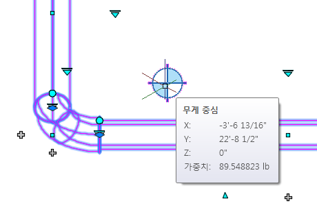 파이프, 파이프 지지, 장비 및 구조에 가중치를 지정할 수 있습니다. 가중치는 사양에 포함되거나, 특성 팔레트 또는 데이터 관리자를 통해 모형에서 설정됩니다.