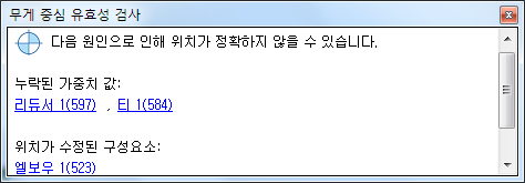 실시간 COG가 활성화된 경우 가중치가 없는 Plant 객체를 선택하면 가중치가 없는 구성요소를 식별하는 유효성 검사 창이 표시됩니다. 가중치가 있는 구성요소를 선택하지 않으면 실시간 COG 유효성 검사가 활성화되지 않습니다.