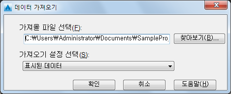 다른 프로그램에서 데이터를 가져오려면 해당 사용자 설정을 클릭합니다. 그러나 영역 또는 사용자화된 뷰로 가져오는 경우에는 사용자 설정을 사용할 수 없습니다.