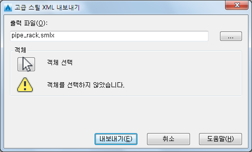 내보낼 구조 객체를 설정하고 내보낼 객체를 선택하지 않은 경우를 나타냅니다.
