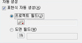 자동 생성 아래에서 표현식 자동 생성 확인란을 선택합니다. 필요에 따라 프로젝트 필드(또는 도면 영역)를 클릭합니다.